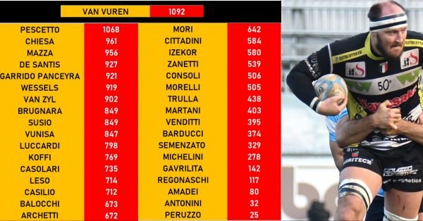 | Argos Petrarca Rugby | 42 | 12 | 9 |